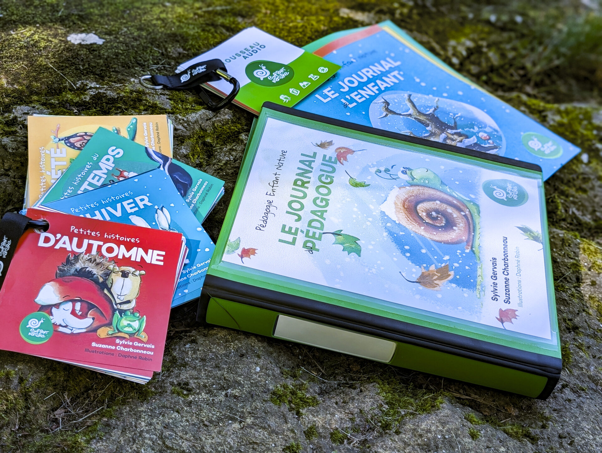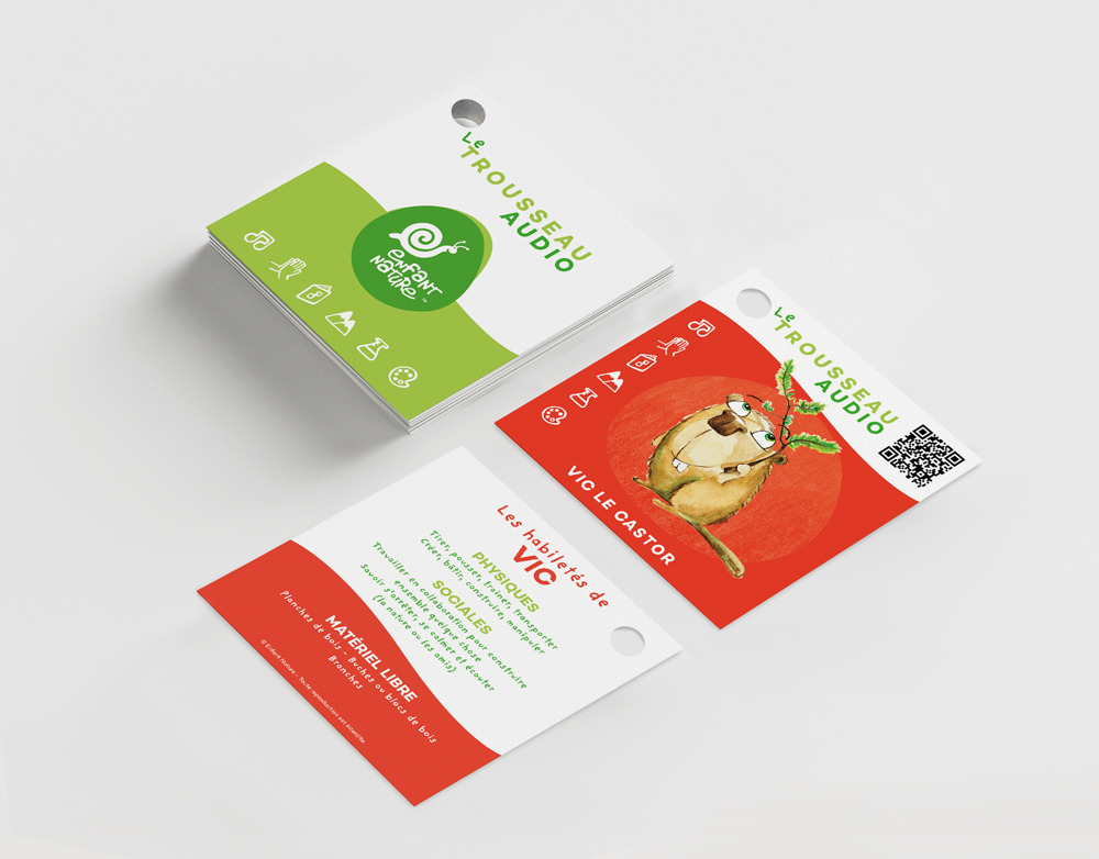 Le tout nouveau Trousseau audio transportable sur mousqueton : 16 fiches des habiletés physiques et sociales reliées aux animaux, fichiers audio des histoires, chansons et méditations, propositions d’explorations et de matériel libre pour chaque fiche.